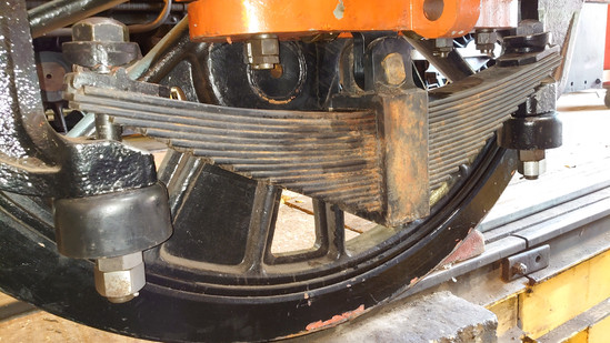 Meanwhile at Didcot, work to attach the springs has finished and further assembly of tender components continues. The pictures below show the vacuum cylinder being lowered into place and the base being reattached.